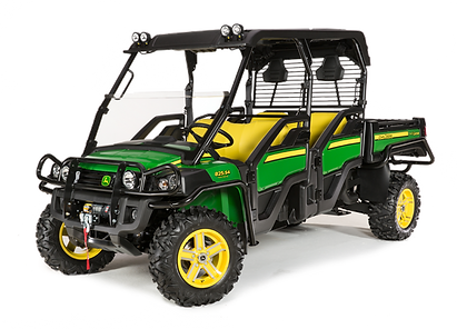 The off-road just got roomier with our fastest, most powerful full-size four-seater, the the 44 mph (71 km/h), 50-HP (37 kW)* EFI gas-powered Gator™ XUV825i S4 Utility Vehicle. The cargo box is big and roomy with over 20-tie down points to keep things secure, and a pickup-style tailgate makes loading and unloading easy. The rear seat can even fold down for extra storage as well. Plus, when it comes to unloading, the cargo box lifts and dumps with ease. Fold the rear seat back up and there's room for four passengers. You can even take control of any trail with standard power steering.